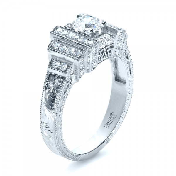 Custom Antiqued and Hand Engraved Diamond Engagement Ring