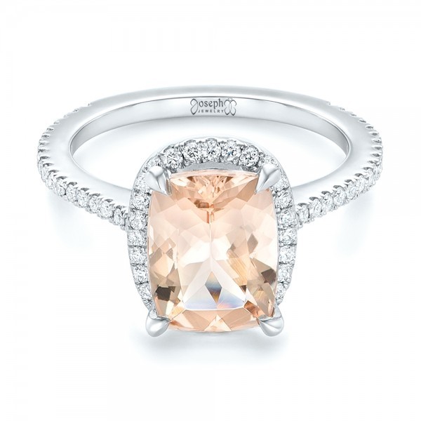 We recommend pairing morganite with rose gold and accent diamonds to highlight the center stone, but platinum is always a lovely choice for the band as well because the strength of platinum will support the large size of morganite stones best.