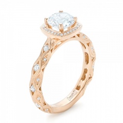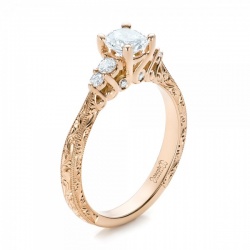 Hand Engraved Rose Gold and Diamond Engagement Ring