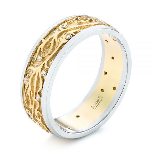 Custom Hand Engraved Two-Tone Diamond Men's Band