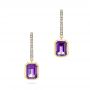 14k Yellow Gold Amethyst And Diamond Huggie Earrings