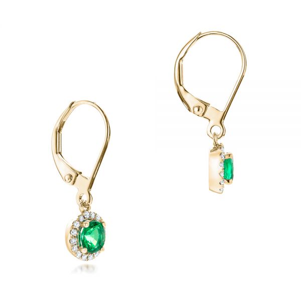14k Yellow Gold Emerald And Diamond Halo Earrings