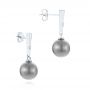 These modern dark pearl earrings feature a tapered bar drop design with a tiny diamond flush set into each piece.