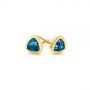 These lovely stud earrings feature trillion cut London blue topaz gemstones secured in polished yellow gold bezel settings.