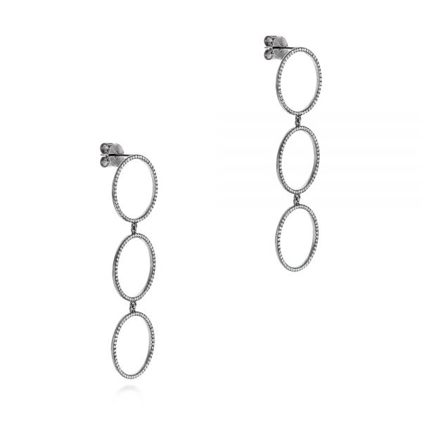 These lovely earrings feature a drop style with three dainty diamond circles, all set in black rhodium-plated white gold.
