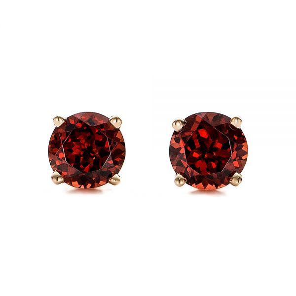 Custom Organic Yellow Gold and Red Garnet Earrings