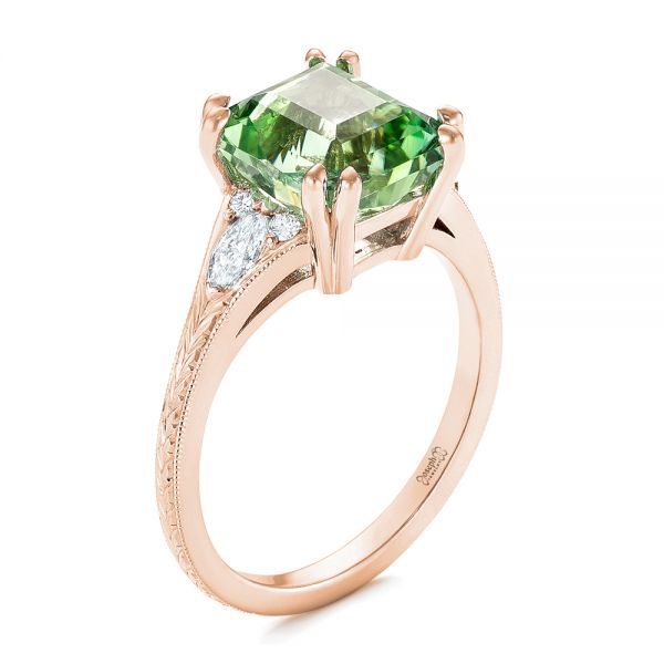 14k Rose Gold Custom Green Tourmaline And Diamond Engagement Ring