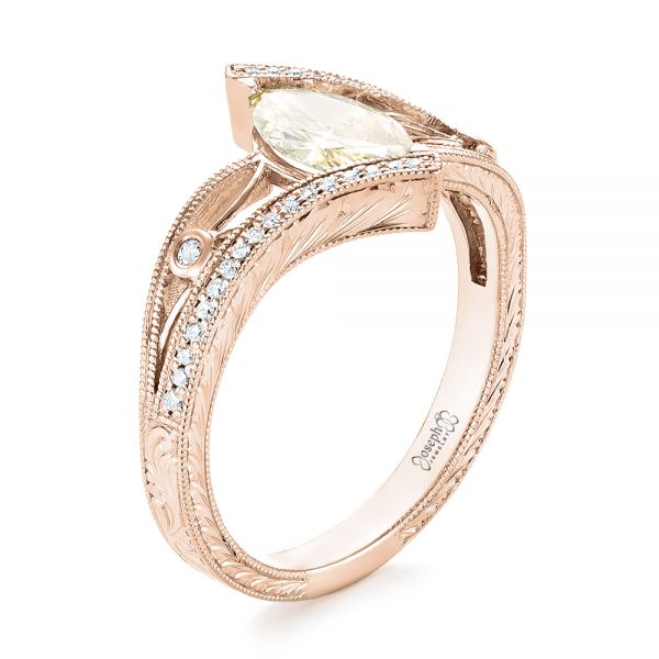 14k Rose Gold Custom Marquise Yellow And White Diamond Engagement Ring