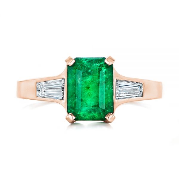 14k Rose Gold Custom Three Stone Emerald And Diamond Engagement Ring