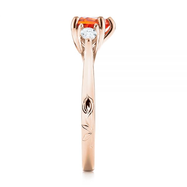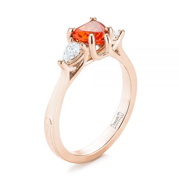 14k Rose Gold Custom Three Stone Orange Sapphire And Diamond Engagement Ring