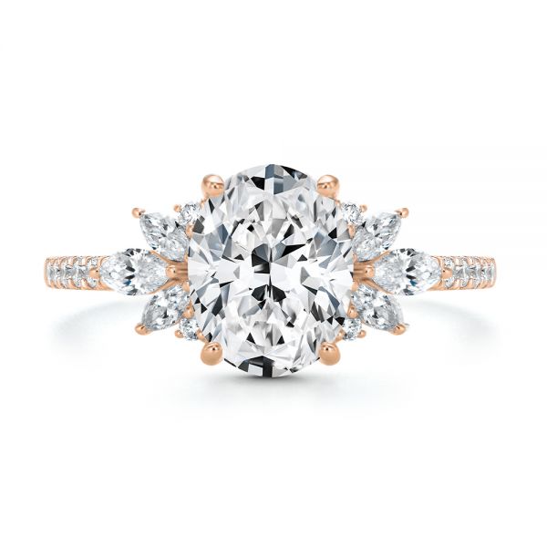 This engagement ring reveals the beauty of cluster settings. The whimsy look it reflects adds a unique character to the classic look of an oval diamond. Whether you’re looking for a special custom piece, or have fallen in love with this one, we’re here to assist you with your sparkly journey. Design Your Own Engagement Ring