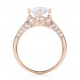 The band of this ring maintains a consistent width most of the way around the bottom, but it widens as it nears the top, and the spot where the widening begins is marked by the emergence of round bright cut set diamond accents. These are organized into sections, the margins of which are clarified by the addition of milgrain beading, and that brings some vintage flair to the design as well. Vintage Engagement Rings Bellevue