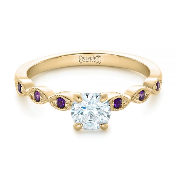 14k Yellow Gold Custom Diamond And Amethyst Engagement Ring