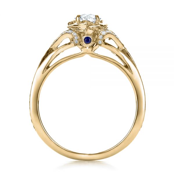 14k Yellow Gold Custom Diamond And Blue Sapphire Engagement Ring