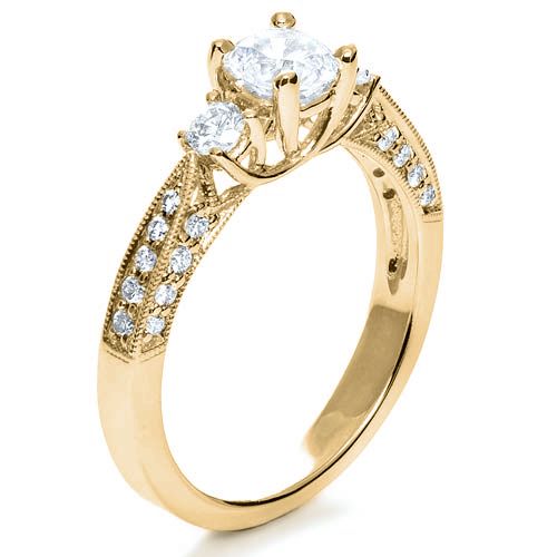 14k Yellow Gold 14k Yellow Gold Three Stone Diamond Engagement Ring - Three-Quarter View -  236