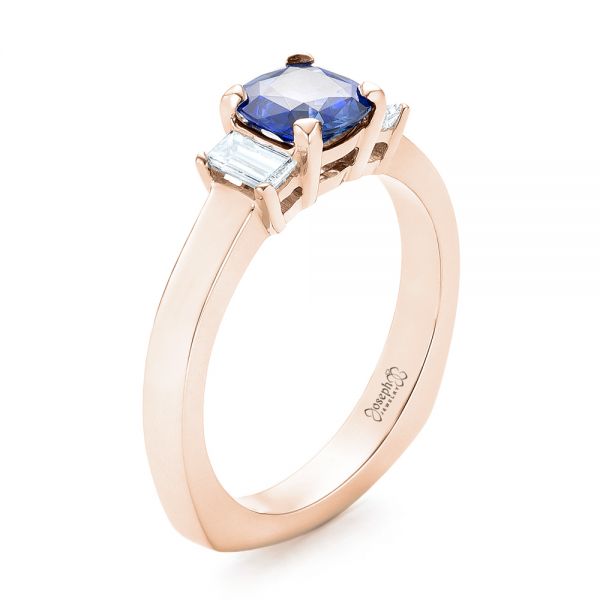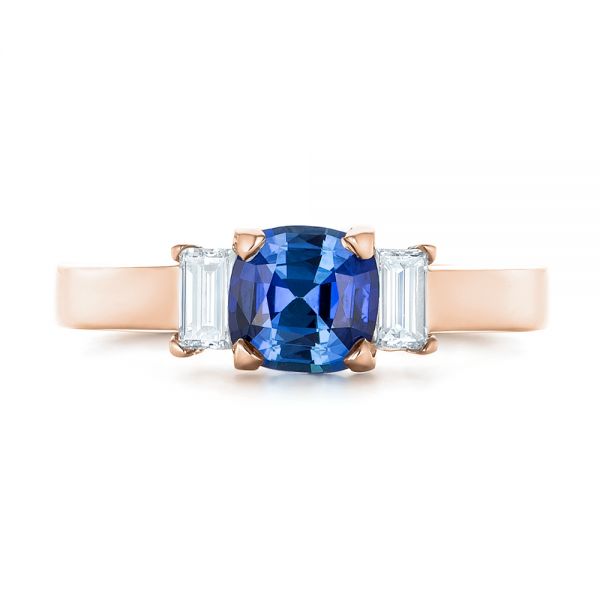 18k Rose Gold Custom Three Stone Blue Sapphire And Diamond Engagement Ring