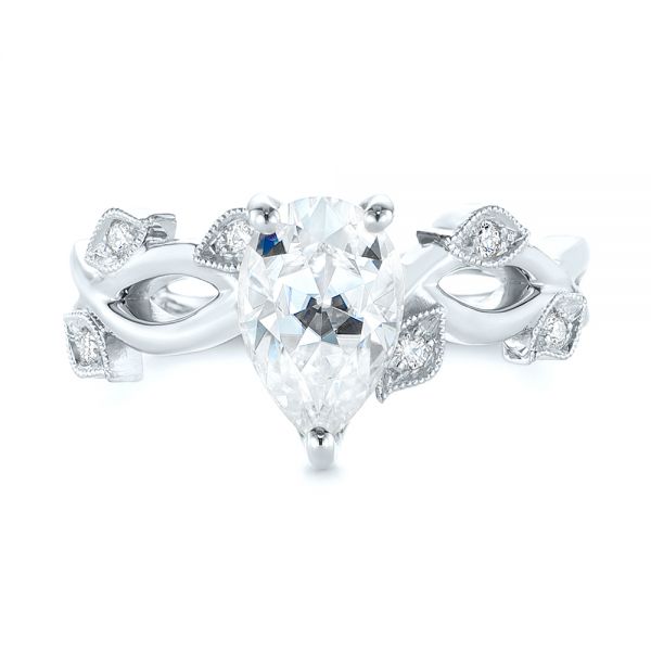 18k White Gold Custom Floral Moissanite And Diamond Engagement Ring