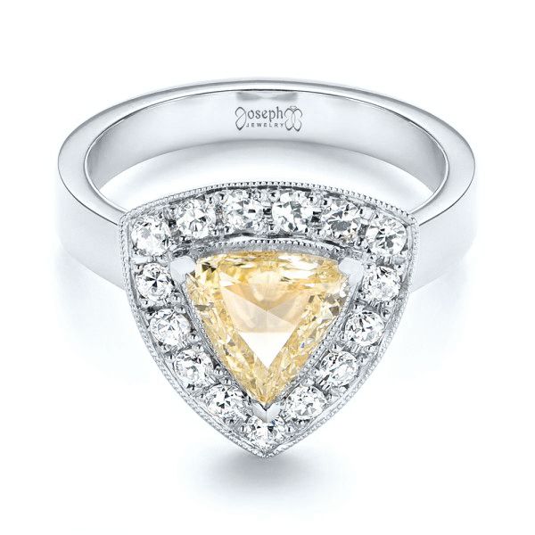 18k White Gold Custom Yellow And White Diamond Halo Engagement Ring