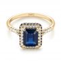 18k Yellow Gold Custom Blue Sapphire And Diamond Halo Engagement Ring