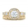 18k Yellow Gold Custom Diamond Halo And Hand Engraved Engagement Ring