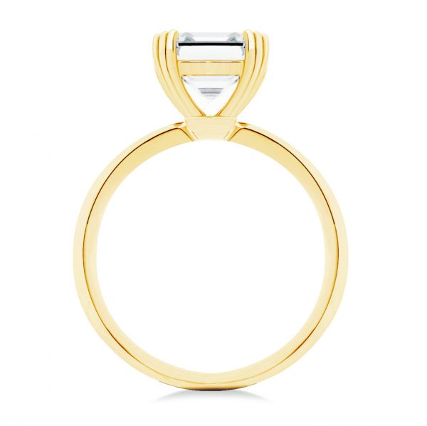 This simple, elegant engagement ring features a sleek yellow gold band atop which nests a delicate asscher cut gemstone. To spice up this solitaire, all the play happens at the center gemstone’s level drawing the attention exclusively center stage. At Joseph Jewelry, we make your vision come to life. Through our custom design process, you can enjoy creating your own ring, anytime, anywhere you are around the world. Design Your Own