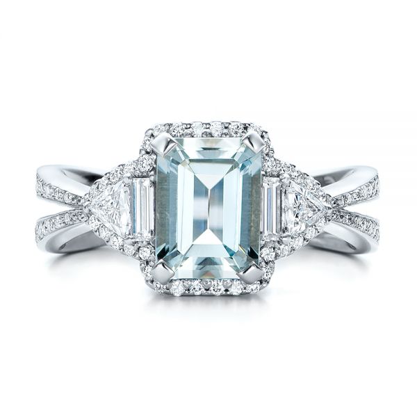 18k White Gold Custom Aquamarine And Diamond Halo Engagement Ring - Top View -  102048