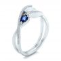 This gorgeous engagement ring features a round brilliant cut diamond flanked on either side by pear shaped blue sapphires, all set in a wrapped white gold shank. It was designed for a client from Provo, UT, who found our ring #100056 and wanted to make a few small adjustments so it would better match his ideal. We worked with him exclusively online to produce a piece he was completely satisfied with and that his fiancee loves.
