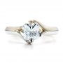 This elegant engagement ring features a cushion shaped diamond prong set atop a white gold knife edge shank, accented with contrasting finishes. It was created as a custom order for a client, and our team is ready to work with you to adapt it to match your vision. We can discuss your project with you via online messages, or we can work with you in person in our Bellevue, WA showroom. Either way, we’re committed to producing a high-quality piece of fine custom jewelry that’s exactly what you’ve been dreaming of. Design Your Own Engagement Ring