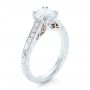Except for a tiny section at the very bottom, the remainder of the band is covered with beautiful custom engraving in a swirling organic pattern. This ties in nicely with the hand-made rose gold filigree that fills the space below the shoulders of the shank and the main setting, and its exquisite quality is possible thanks to the skill of our expert artisans.