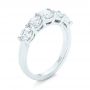 There are four other diamonds in this ring, and they’re all prong set as well, with two on each side of the larger center stone. Taken together, these accent diamonds come to exactly one carat, with their shape and prong setting mirroring the larger diamond at the top. All of these diamonds from the set the client provided, and their placement matches up perfectly with that of the diamonds in the companion wedding band. Matching Wedding Sets