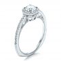 This dazzling engagement ring features a round brilliant cut diamond in the center of a split prong set diamond halo, with additional diamond and milgrain accents on the white gold band. It’s a vintage-inspired piece, and we can help you customize it as part of a complete wedding set or on its own. Our team is available to discuss your ideas with you in person in our Bellevue, WA showroom, or you can use the Ring Builder feature on our website to share your vision and get the custom design process underway. Design Your Own Engagement Ring