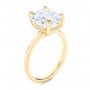 This beautiful engagement ring features at its center a square cushion diamond. The ring is designed in 14k yellow gold in a bright cut setting on the hidden diamond halo.