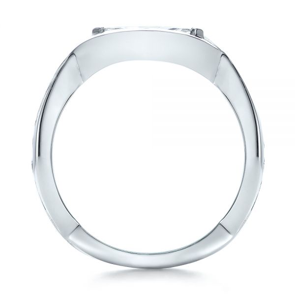 This combination of features gives the ring a contemporary flair, and the fluidity of the design is complemented by the high-polish finish on the 14k white gold. However, if you’d like to adjust this piece a bit so it’s a better fit for your personal style, there are quite a few options to consider.