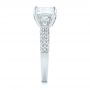 The centerpiece of this ring is a 2.02 carat cushion cut diamond, and it’s prong set in platinum. The prongs originate on the inner margin of the band, and they angle gently upward before curving over and around the corners of the diamond. The elegant curves of the setting complement the cut of the stone nicely, and the openness of the setting ensures that plenty of light can reach the the large diamond. Diamond Engagement Rings