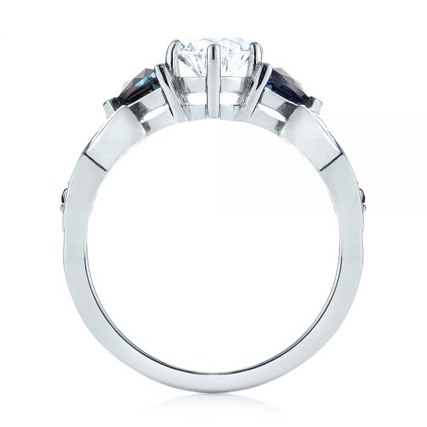 Custom Three Stone Blue Sapphire And Diamond Engagement Ring