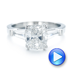 This beautiful engagement ring features a cushion cut diamond at the top, with baguette diamonds on the shoulders, and additional diamond accents on the fronts of the basket. It was created for a client from Woodinville, WA, who already had the center diamond she wanted to use, along with a clear idea about the styles and features she liked. We developed a CAD model for her of the piece as we proposed to build it, and she requested a few modifications before giving her approval to move into production. Design Your Own Engagement Ring
