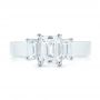 This elegant engagement ring features a large emerald cut diamond in the center of a three-stone setting, with smaller emerald cut diamonds on the sides, and all of these are prong set in white gold. It was created for a client from Bellevue, WA, who initially came to us to have her existing engagement ring repaired.