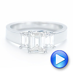 Custom Three Stone Emerald and Diamond Engagement Ring