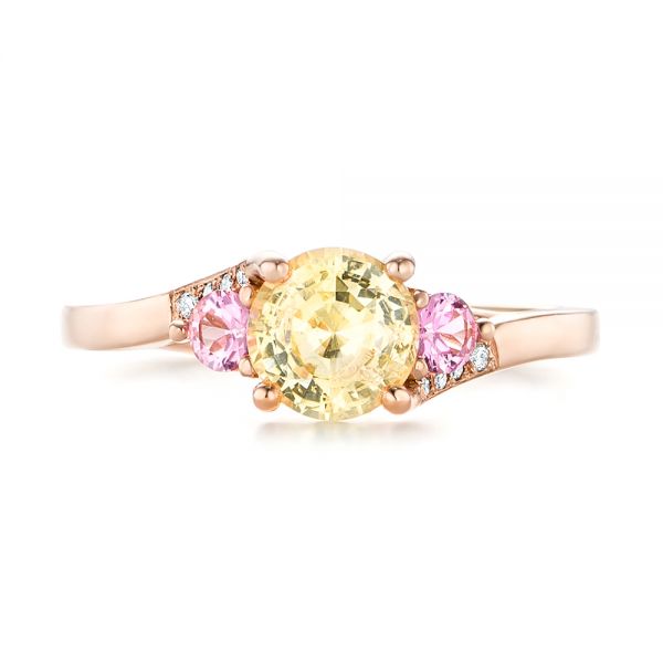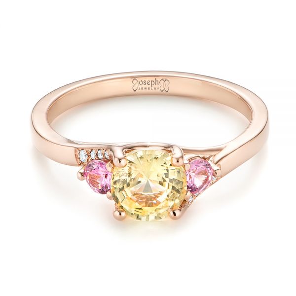 Custom Three Stone Yellow And Pink Sapphire And Diamond Engagement Ring