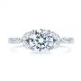 What could be better than hand engraving to complement a floral-themed engagement ring? This technique has always been the perfect approach to elevating any design and giving it a vintage feel. The curves and bends marked into this design boost its exquisite look and antique touch. The details engraved along the shank incorporate leaf patterns, all in 18k white gold metal.
