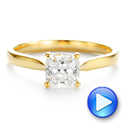 The only diamond on this ring is a 1.25 carat cushion cut diamond. This cut features a square shape but with rounded corners. Cushion cuts have several variations, from a more exact pattern to a "crushed ice" look. Our designers can source several options for you to consider. Solitaire Engagement Rings