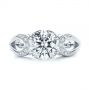 This stunning engagement ring features a round brilliant diamond center with crescent moon designs on each side, incorporating filigree and peekaboo diamonds on the profile and split shank, all set in white gold. It was created for a client from Ft. Irwin, CA, who had a design in mind and worked with our designer to create a truly unique ring for his fiance. Design Your Own Engagement Ring