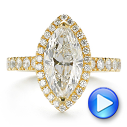 This exquisite engagement ring features a marquise diamond surrounded by a delicate halo, diamonds on the gallery, and diamonds set on the band, all in yellow gold. It was created for a client from Kirkland, WA, who wanted to propose with a completely unique, beautiful engagement ring.
