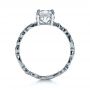 A brilliant cut center diamond is accented by a beautiful organic shank set with brilliant cut diamonds and milgrain in this exceptional piece.