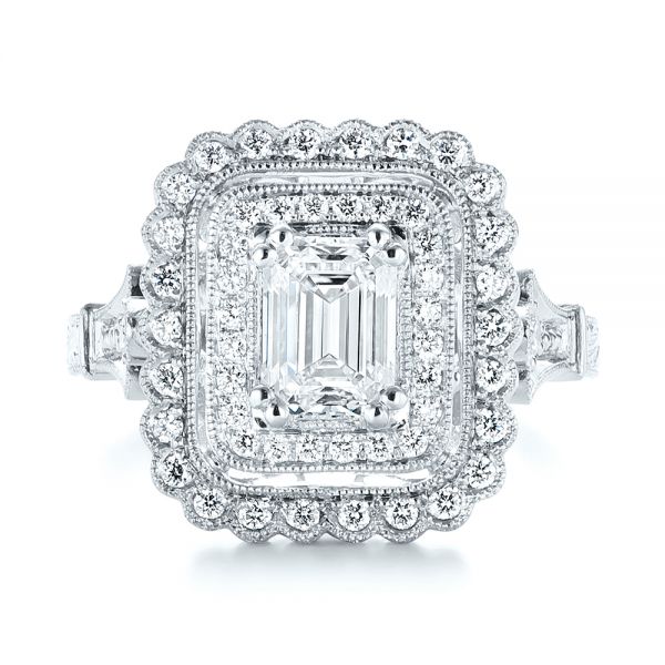 Platinum And 18k White Gold Custom Two-tone Double Halo Diamond Engagement Ring