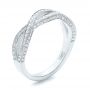 The wedding ring we created to complement this piece features the same criss-crossing band design, as well as matching diamond accents. That helps ensure a truly dazzling display when the two rings are worn together, as well as a perfect alignment of all details in the set.