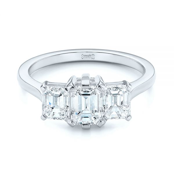 This gorgeous engagement ring features three emerald cut diamonds prong set across the top, with the larger in the middle and two smaller stones on the sides. It was created for a client from Irvine, CA, who reached out to us online to share her ideas about the type of ring she wanted to create. What she was looking for was an update to an existing piece, and we used all of the information she provided to develop a unique design for her in CAD. Design Your Own Engagement Ring