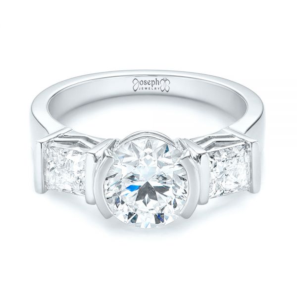 Platinum Custom Three Stone Semi Bezel Diamond Engagement Ring