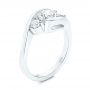 The main stone featured in this ring is a 0.93 ctw round cut diamond, prong-set between the two wrapped ends of the shank. When looked at from a bird eye view, the three diamonds appear to be hugged together by the extending ends of the shank.
