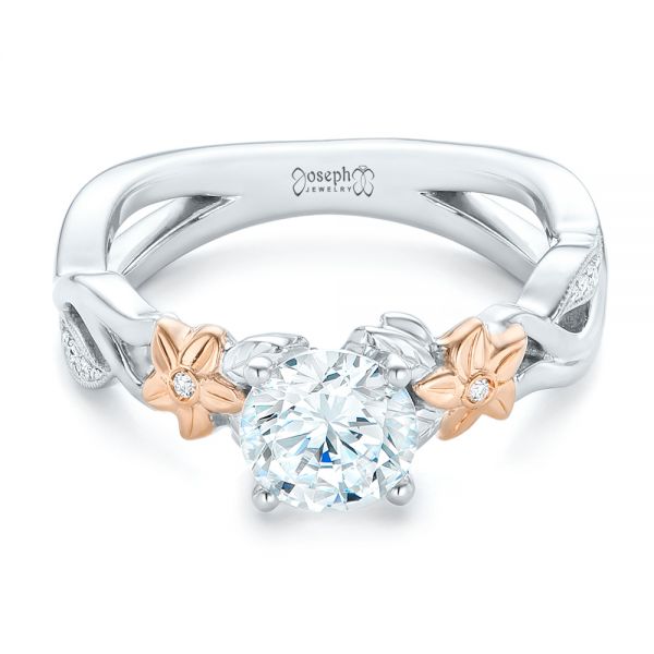 Two-tone Flower And Leaf Diamond Engagement Ring